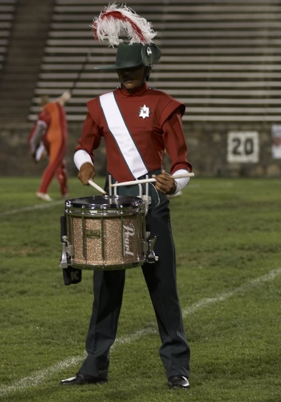 ちなみにこの写真はサンタクララ・ヴァンガードというバンドのスネアドラム(小太鼓)の人の写真ですが、どうですか??かっこいいでしょう(笑)この写真では一人しか写っていませんが、このバンドには同じスネアが8人います(年によって増減ありますが、大体7~8台)。その8人で一糸乱れぬスティック裁きは圧巻です。